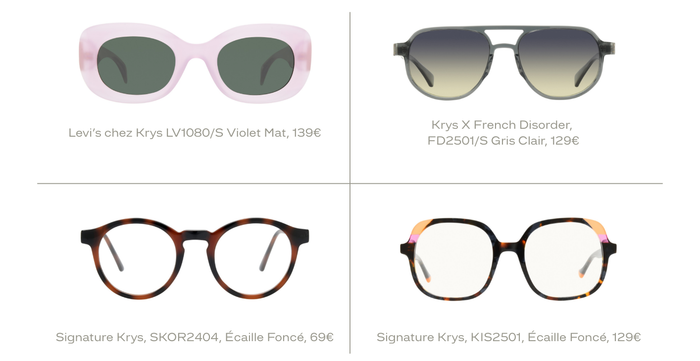 Sur ce canevas de pureté, Krys joue la carte du contraste : montures translucides rosées, écailles profondes et verres dégradés s’y répondent pour créer un style à la fois léger et affirmé, résolument contemporain.